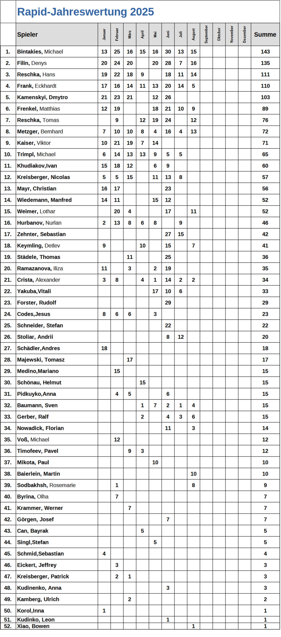 In der Rapid Jahreswertung bleibt weiterhin Michael Bintakies vor Denys Filin