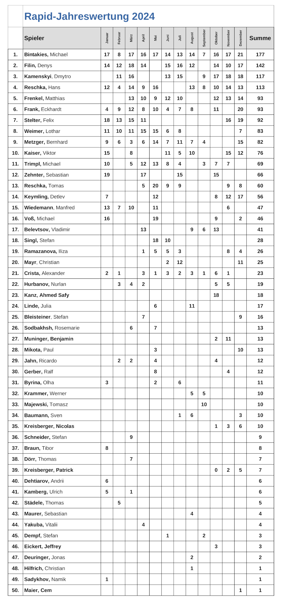 | Rapid Jahreswertung 2024 |