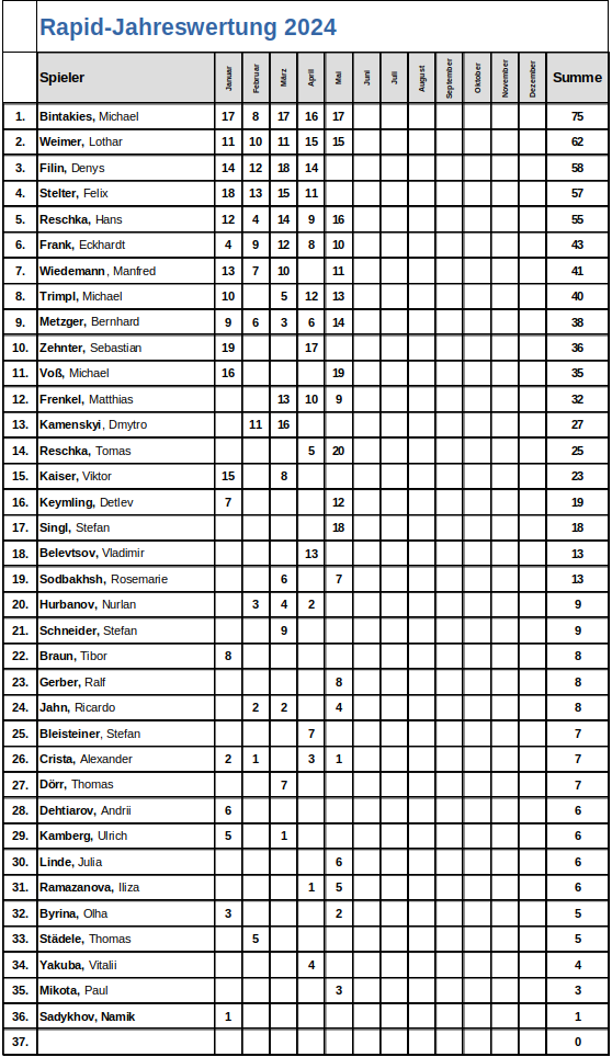 Hier nun die Abschlusstabelle des Mai-Rapids:
