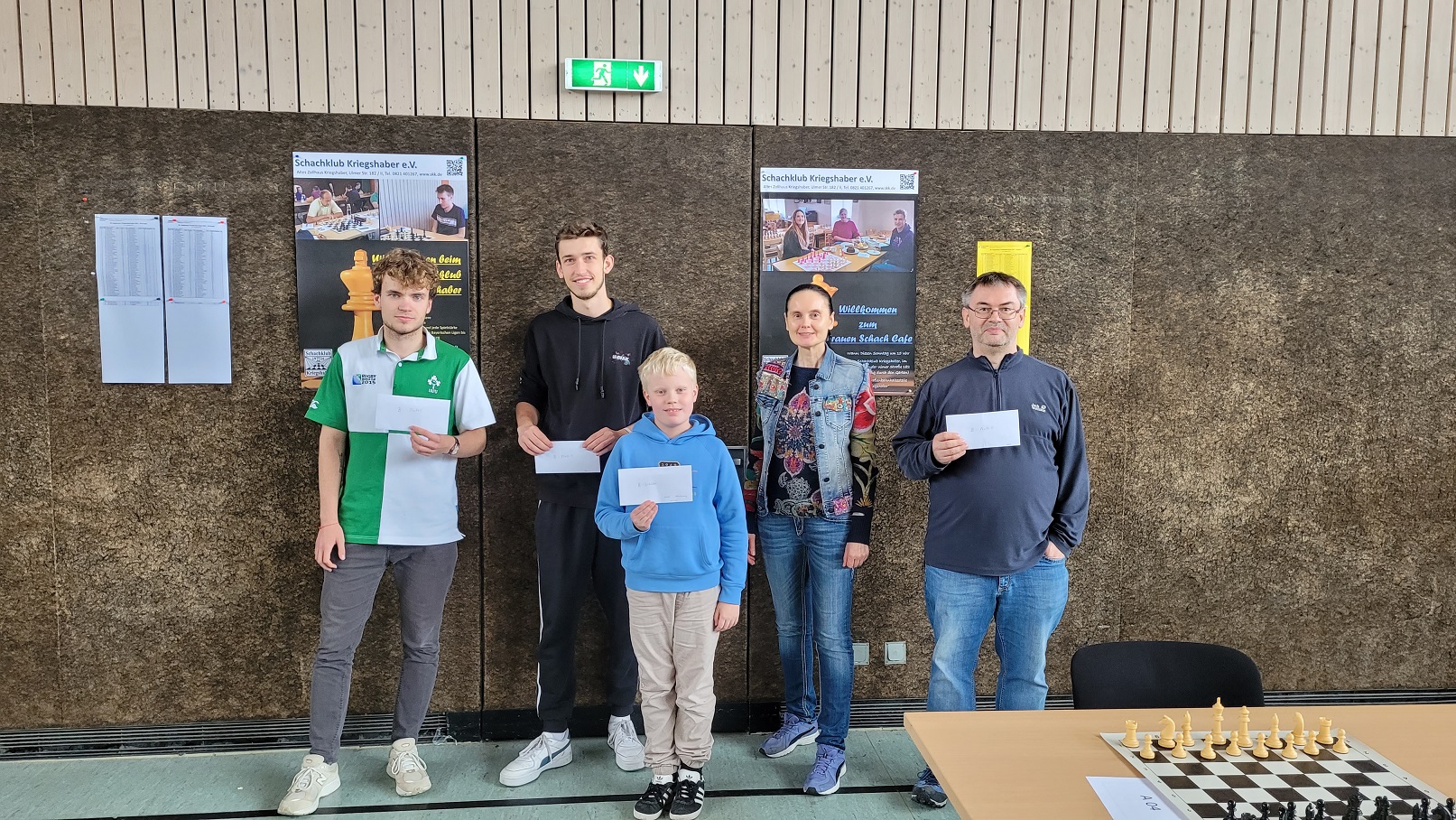 Außerdem haben wir in einigen Gruppen spontan mehr Preise vergeben, als in der Ausschreibung angekündigt war, einfach weil in einigen Ratinggruppen erfreulich viele Teilnehmer waren und wir das auch würdigen wollten. So wurden in der A-Gruppe ein zweiter Jugendpreis und in der B-Gruppe jeweils ein zweiter Jugend-, Senioren- und Damenpreis vergeben sowie ein Schülerpreis. Für alle Jugendlichen und Schüler hatten wir noch einen ordentlichen Sachpreistisch bestückt, so dass da niemand ausging.