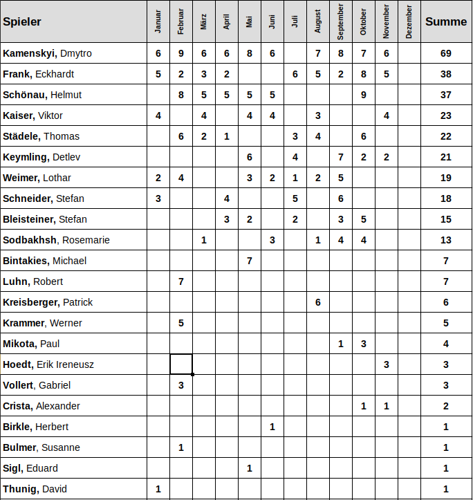 Stand der Rapid-Jahreswertung nach der November-Runde: