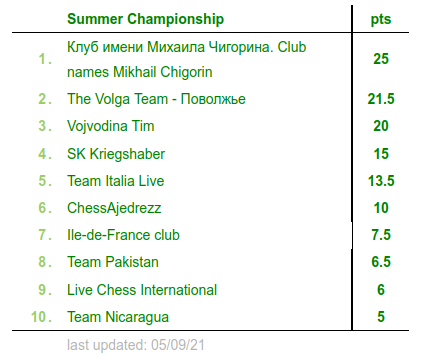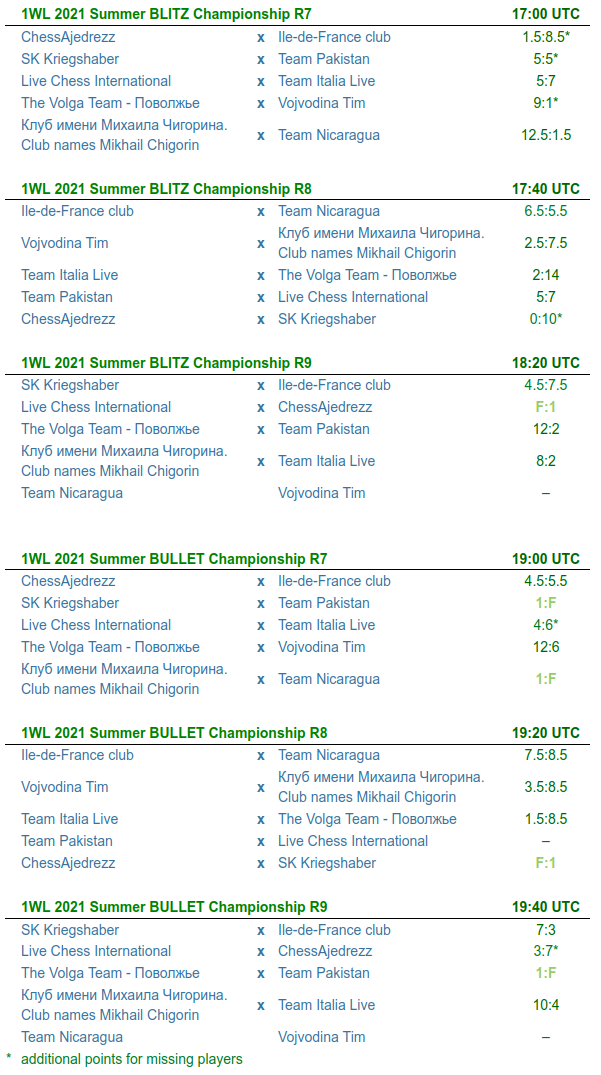 Die One World League LIVE Summer Championship 2021 ist beendet – gestern, am 04.09.2021, wurden die letzten sechs Teil-Matches (jeweils Runden 7 bis 9) in den Disziplinen Blitz (5|2) und Bullet (2|1) gespielt. Hier die