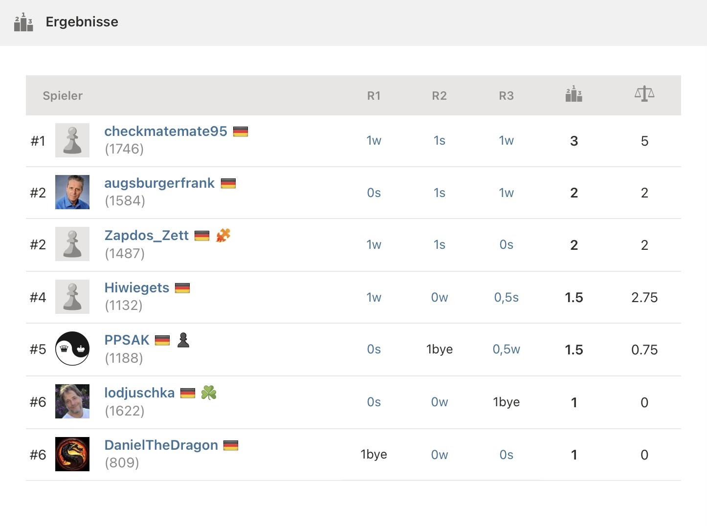 Das Chess960-Osterturnier war ein kleiner Erfolg mit 7 Teilnehmern. Sowohl Senioren als auch Junioren waren vertreten.