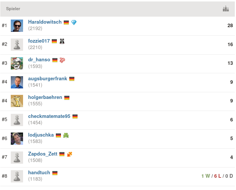 Frischen Wind brachte Holger in die spinnweben-durchsetzte Riege unserer alten Säcke: Bei seiner ersten Teilnahme auf Anhieb punktgleich mit El Presidente Eckhardt den geteilten 4./5. Platz belegt – Respekt! Mehr davon!