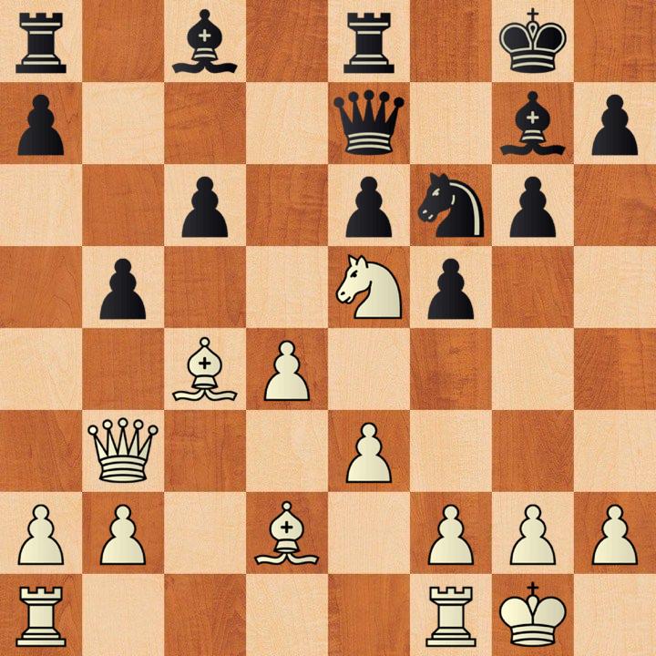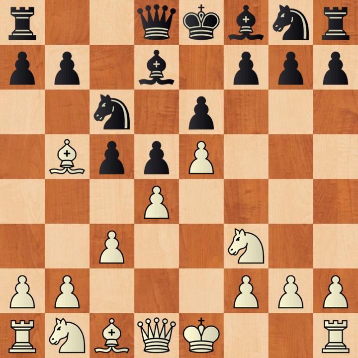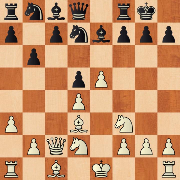 Soeben hat Peter mit 10.Dc2 eine D-L-Batterie gegen den unzureichend geschützten Bh7 aufgebaut, was von Schwarz nun wie pariert wird? – Antwort: Gar nicht, es folgte ungerührt  10…Lb7?? 11.Lxh7+ Kh8 usw.