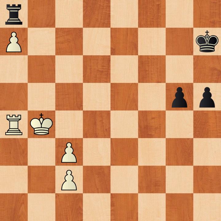 Wir erinnern uns: Patrick (PPSAK, Rating 999) mit Schwarz steht vor seiner 1-Ratingpunkt-Challenge und spielt gegen JamesWilson0404, einen Gegner mit ca. 1040; ein Remis würde also reichen. Doch er spielt die Partie über fast die gesamte Strecke blitzsauber durch, kommt in deutlichen Vorteil, vergibt ihn dann wieder, und beide landen nach dem Zug 45.Kb4 in diesem Turmendspiel – was ist stärker, der furchteinflößende Freibauer auf a7 oder die zwei verbundenen schwarzen Königsflügelbauern von Schwarz? 10 Züge später waren beide Türme weg, Patrick hatte eine Dame und sein Gegner nicht, und nach einer – naja, noch etwas holprigen – Mattjagd konnte Patrick schließlich den Sack zumachen und hatte sich satte 17 Ratingpunkte dazu verdient – Mission accomplished! Das heißt, Moment – er hatte ja sofort noch eine zweite Partie zu spielen: