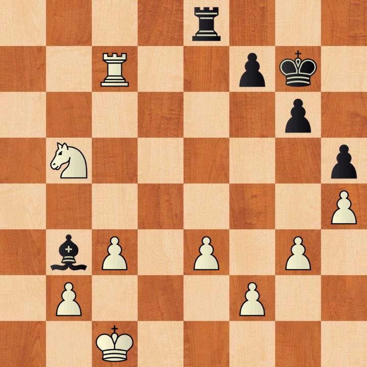 Wir schalten uns im 32. Zug in diese Partie ein: Erneut hat Patrick, diesmal mit Weiß spielend, sich eine totale Gewinnstellung mit drei Mehrbauern erarbeitet und steht wenige Züge vor seinem zweiten Punktgewinn, als er unerklärlicherweise plötzlich zaudert und den Faden verliert. Anstatt nun etwas Unverbindliches wie 32.Sd4 zu spielen, um dann einfach seine Damenflügelbauern nach vorne zu schieben, verfiel er hier auf die Idee 32.Sd6, und nach der Antwort Td8 war der Springer wieder angegriffen. Noch immer steht Weiß auf Gewinn, doch dies ändert sich jäh, als er mit 33.Sb5?? seinen letzten Zug quasi rückgängig machen wollte. In der Tat fast dieselbe Stellung wie eben, nur dass der schwarze Turm nun anstatt auf e8 auf d8 steht – und dies ermöglichte leider den Blattschuss 33…Td1#.