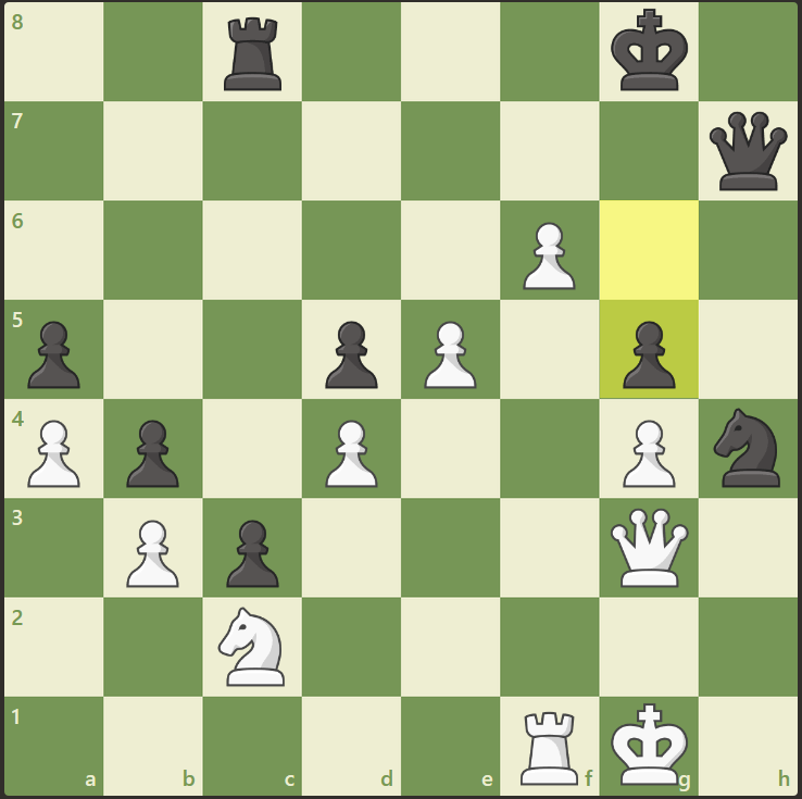 43. Df6 Soweit ich sehen konnte, habe ich meinen König abgedeckt, der gegnerische König ist eingesperrt und die Damenumwandlung von Schwarz deckt erst mal der Springer ab. Allerdings muss jetzt alles mit Schachgeboten und ohne jeden Zwischenzug ablaufen.