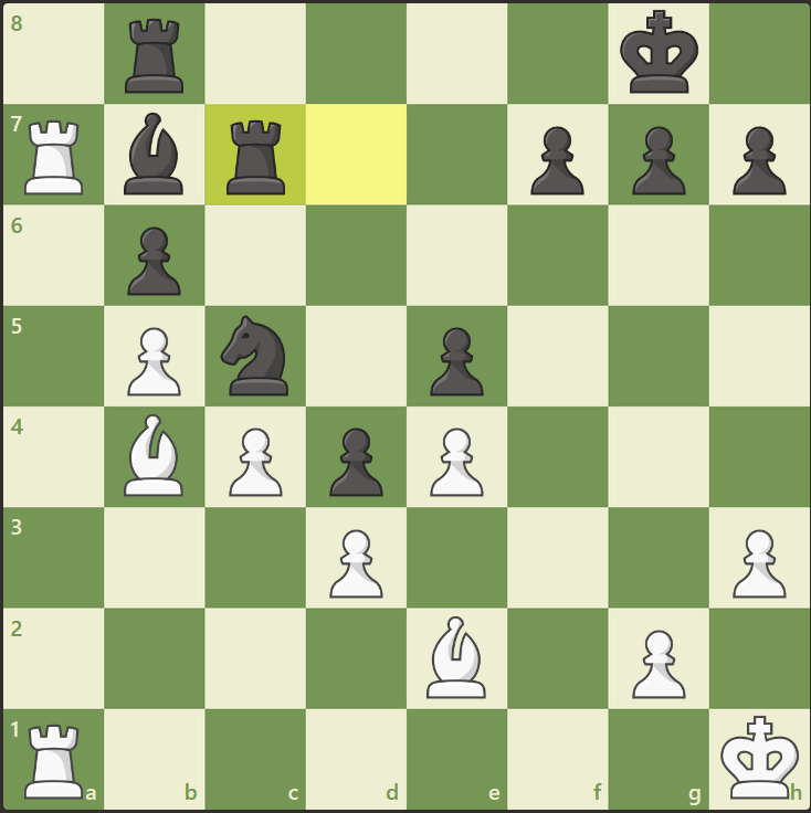 Interessant ist auch 30. … Sxa6 31. bxSa6 Jetzt 31. … Lxa6 32. Txc6 wäre schlechter als die vorige Variante, denn nun habe ich für den Turm das Läuferpaar.