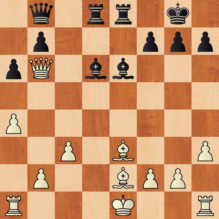 Garde7 (Weiß, letzter Zug war Db4-b6) hat gegen GM Bellon Lopez (den Ehemann von GMin Pia Cramling) einen Bauern mehr, aber die Spieler hatten hier soeben die Schaukel Ld6-c7 Db6-b4 Lc7-d6 Db4-b6 zum dritten Mal wiederholt, so dass die Partie remis endete. Auch in seiner zweiten Begegnung hielt Thomas dem GM noch einmal stand – zweimal remis gegen solch einen Gegner, das ist aller Ehren wert!