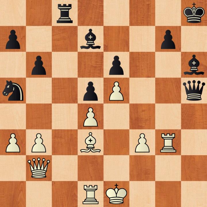 In seinen letzten Matches vom Pech verfolgt war Lacrymaria (Weiß) – hier unternimmt er gegen den starken CM Wernberg schon seit einiger Zeit mit 3 Bauern gegen Springer Gewinnversuche. In der Diagrammstellung spielte der CM als Notbremse das Springeropfer Se3xg4 mit Pattidee (fxg4 Txg4+!). Lacrymaria wich dem Remis weiterhin mit f3-f4 tapfer aus, lief aber kurz darauf im Zeitnotgefecht in eine Springergabel und verlor den Turm. Schade – aber man sieht hier beispielhaft, dass bei weitem nicht jede unserer Niederlagen eine Einbahnstraße in die Null war.