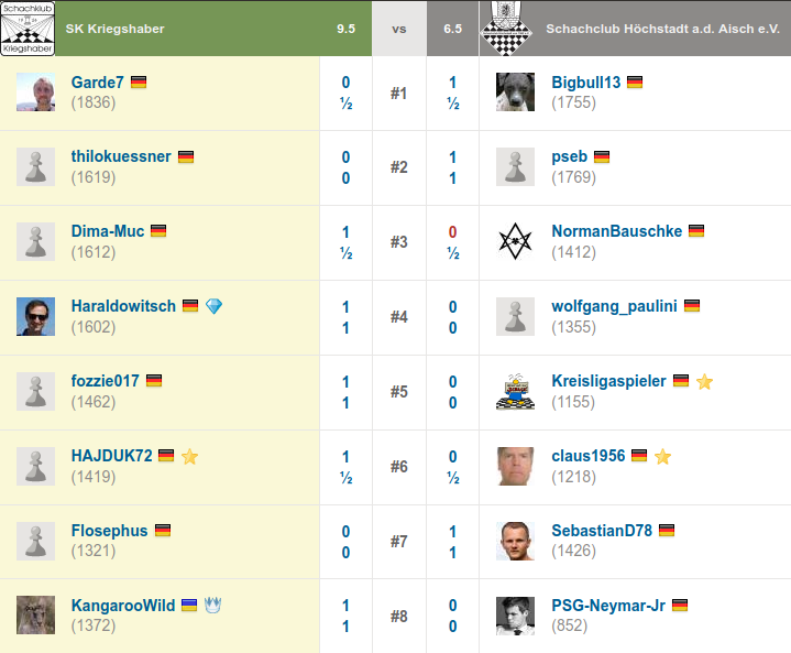 Kriegshaber besiegt Höchstadt im Rapid-Team-Match mit 9½:6½ und anschließend auch im Mannschaftsblitz knapp mit 6½:5½