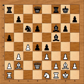Nach den weiteren Zügen 14… Sed5 15.Lf2 Sxc3 16.bxc3 musste Weiß mit dem b-Bauern zurücknehmen. Wir schalten uns in diese Partie erneut ein nach dem 18. Zug von Schwarz (Lc8-d7).