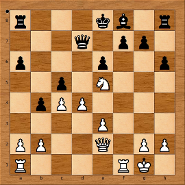 Weiß zog hier 19.Txe8+, wonach allmählich bereits Schwarz in Vorteil kam. Dagegen hätte Stefan hier mit dem trickreichen, aber schwierig zu berechnenden Zug 19.Sf3-e5! weiterhin das Stellungsgleichgewicht wahren können. Der Witz ist, dass durch den Wegzug des Sf3 sofort auch Lg2xd5+ droht.