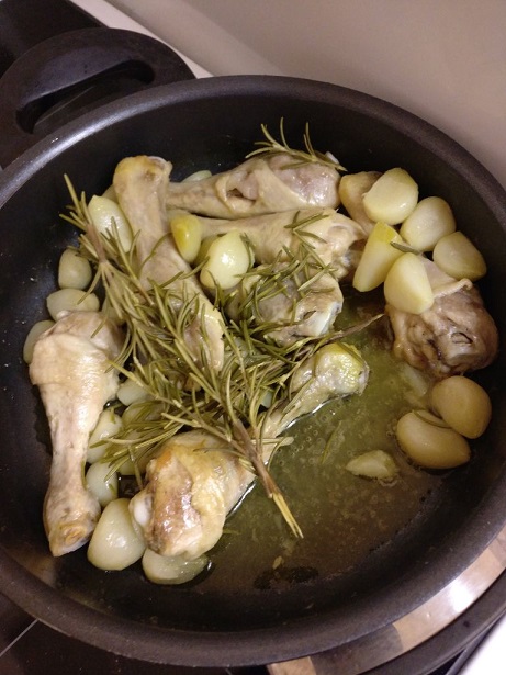 – Heute darf ich keinesfalls ein Buffet organisieren ohne das legendäre Knoblauchhuhn (mit 4 Knollen Knoblauch) siehe das Bild rechts. Jedenfalls wurden anschließend im Klub noch niemals Vampire gesichtet, ist auch immer als erstes weg.