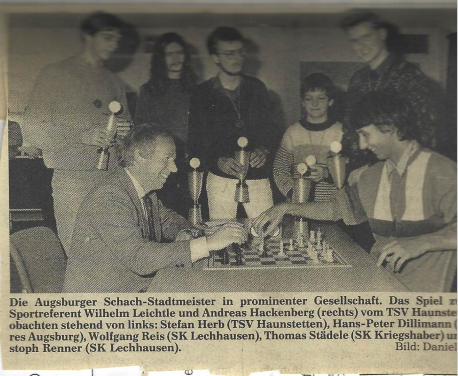 Augsburger Meister und Sieger der Kreisklasse I wurde Rainer SC I von SK Königsspringer-Oberhausen II, abgestiegen sind BC Aichach II und SK Kissing I.