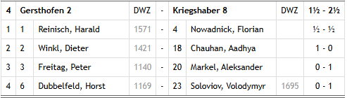 Gersthofen 2 trat in Top-Besetzung an (siehe DWZ-Liste unten), was uns das Leben schwer machte.