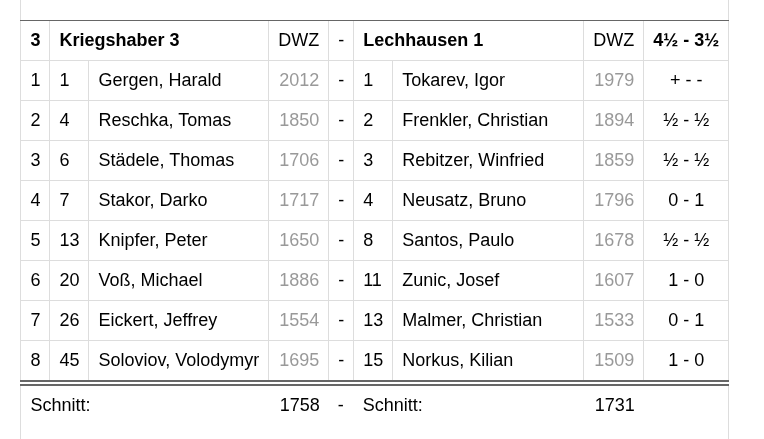 Gute Leistung mit 4 Ersatzspielern bleibt mir zu sagen und bis zum nächsten Mal gegen die Schachfreunde Augsburg.